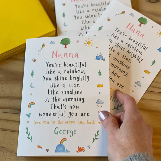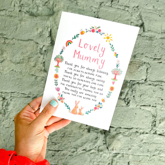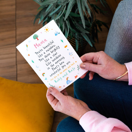 Let a lovely Mum, Mummy or Mama know how truly special they are with a personalised card! Each card can be personalised with the name of your choice xx