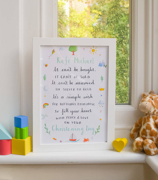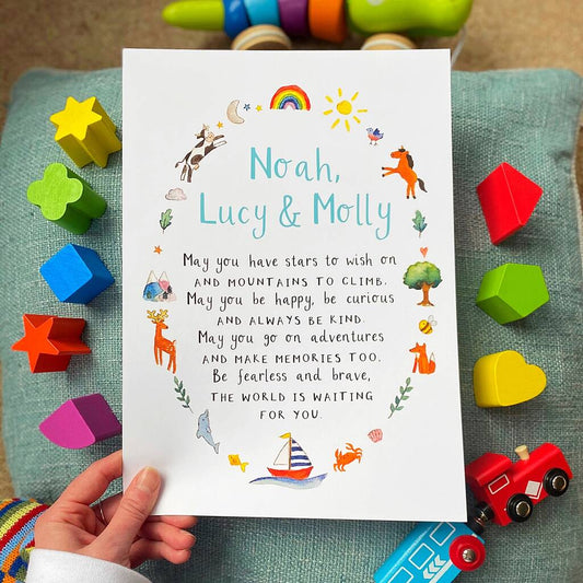 Lovely card with cute illustrations and gorgeous poem. Bought one for a friend who had recently had a baby and loved it so much I purchased another the next day for my sister who had also had a baby. Love that the card could be put in a frame after to make a lovely piece of artwork on the shelf or wall. Would defo shop again, thanks!